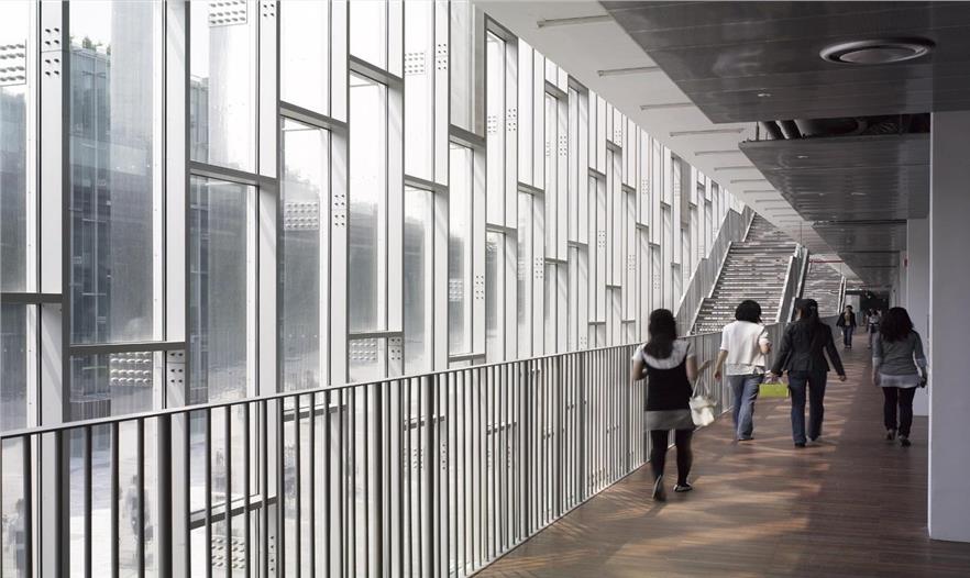 梨花女子大學(xué),它是韓國(guó)第一所女子大學(xué)。多米尼克·佩羅也因這個(gè)已于08年建成的項(xiàng)目獲得了一個(gè)國(guó)際性大獎(jiǎng),這是一個(gè)下沉地面6層,建筑面積約為6.6萬(wàn)平方米,集地下停車(chē)、教室、咖啡館和展覽空間為一體的大型建筑綜合體。人們可以從建筑上方行走也可以從建筑中間穿過(guò),這都為學(xué)生和當(dāng)?shù)鼐用竦耐ㄐ刑峁┝吮憬荩送?,建筑還使得學(xué)校和城市空間有機(jī)地結(jié)合在了一起。