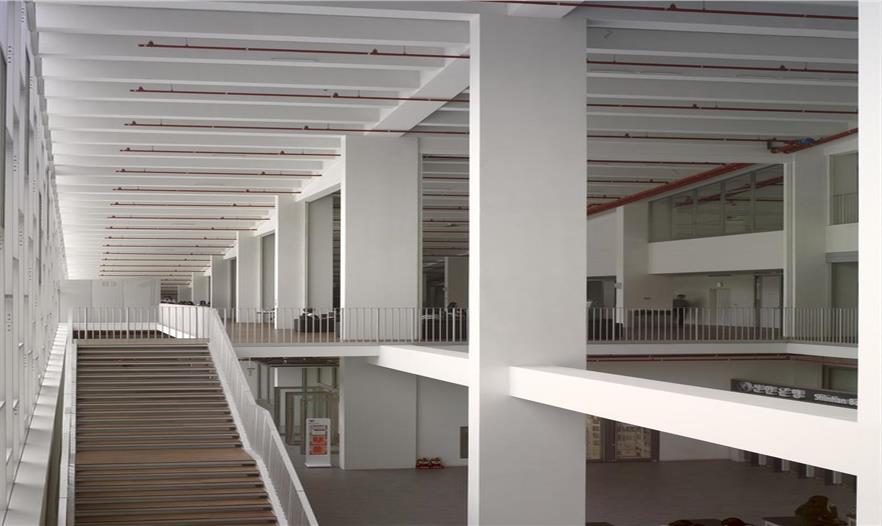 校園提供了田園一般的高品質(zhì)景觀,覆蓋樹(shù)木、鮮花或是草地,創(chuàng)造了獨(dú)特的聚會(huì)空間,可以進(jìn)行非正式的小課堂,或是休憩放松。這正是這所建筑的獨(dú)到之處,它將校園不同元素緊密編織在了一起,模糊了新與舊、建筑和景觀、現(xiàn)在與過(guò)去之間的界限。