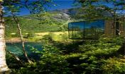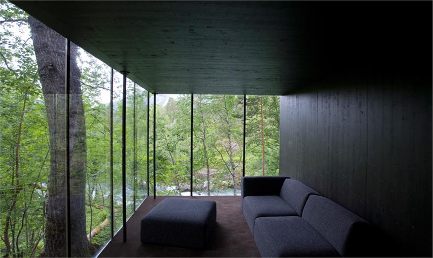 這個(gè)酒店是由Jensen & Skodvin事務(wù)所設(shè)計(jì)的,有7間獨(dú)立小屋,與自然環(huán)境融為一體,室內(nèi)昏暗,凸顯室外的優(yōu)美景色。由于特殊的地形讓任何一間屋子都看不到另一間屋子。這樣的話(huà),每個(gè)房間都有屬于自己的一片美景,而這片美景也會(huì)隨著天氣與季節(jié)的變化帶來(lái)不同的景致。