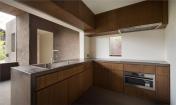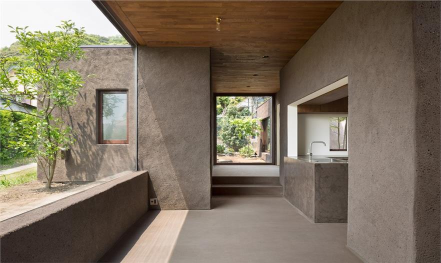 建筑師試圖對“地面”進行革新。在大磯町住宅的地平成和墻面上,均使用“土色”。建筑向地下開挖60公分 ,產(chǎn)生的泥土被用作外立面的材料,其吸潮和保溫的性能良好,冬暖夏涼。二層的空間是一個“木色”整體,地板、墻面、天花板都使用木板作面材。建筑師通過控制空氣的流動來為建筑防風(fēng)防雨、降低濕度。這棟房屋是為其基地量身打造的,它不僅僅關(guān)系到地點,還關(guān)系到基地的歷史和周邊環(huán)境。