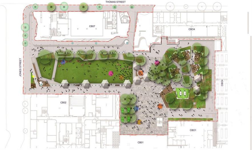 悉尼科技大學(xué)校園綠地是悉尼科技大學(xué)市中校區(qū)最為重要的公共開放空間。校園綠地的規(guī)劃是以具有強(qiáng)烈特色的概念設(shè)計(jì)分析為主導(dǎo),并體現(xiàn)在規(guī)劃和設(shè)計(jì)過(guò)程中所出現(xiàn)的每項(xiàng)設(shè)計(jì)改動(dòng)決策之中。為了呼應(yīng)當(dāng)年校園總體規(guī)劃的遠(yuǎn)景:打造出“吸引人停留的校園”,景觀設(shè)計(jì)工作室將場(chǎng)地劃分為三部分:中心綠地、中心廣場(chǎng)和愜意花園。每個(gè)部分的位置選址都經(jīng)過(guò)了精心的安排,全面考慮了場(chǎng)地朝向、光照、流線、場(chǎng)地功能用途及周邊建筑開發(fā)計(jì)劃情況。