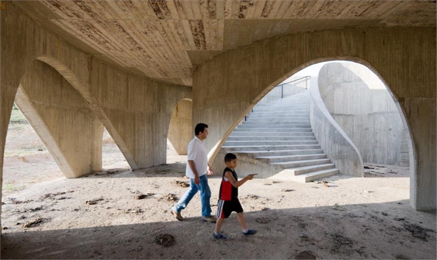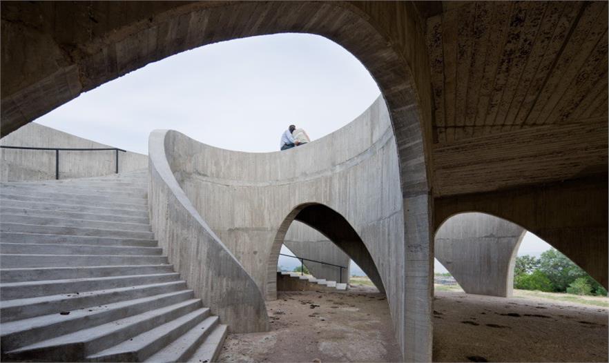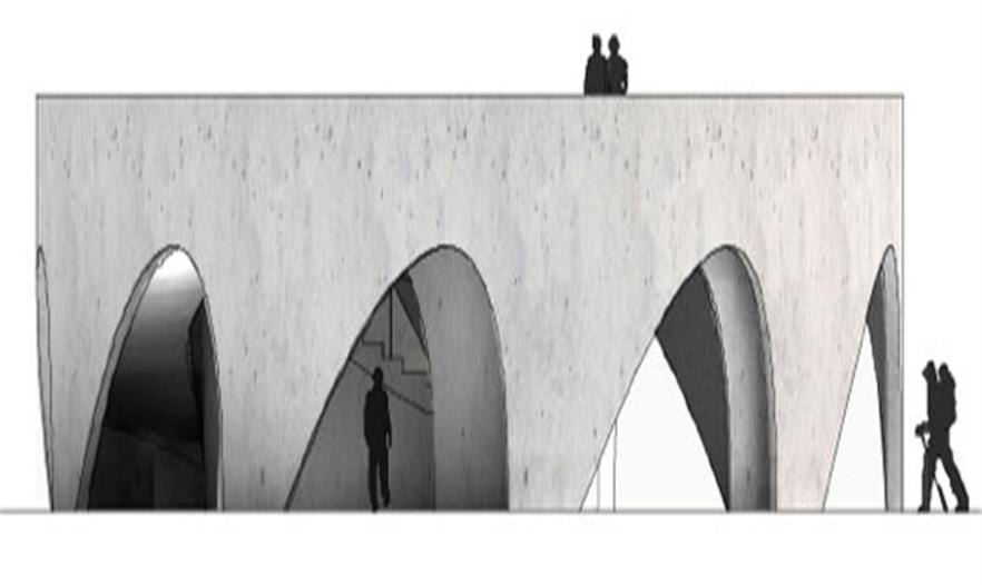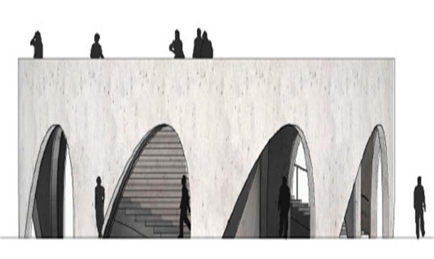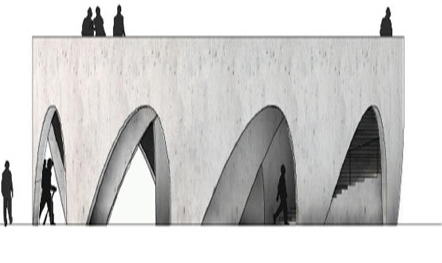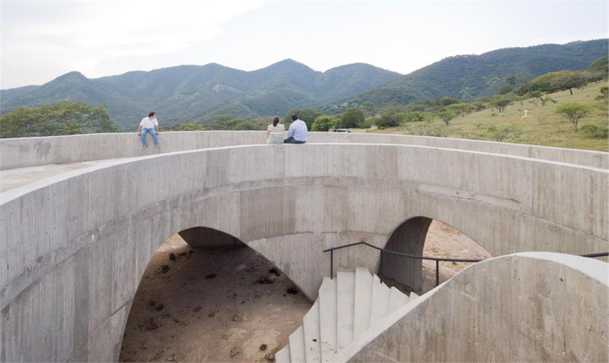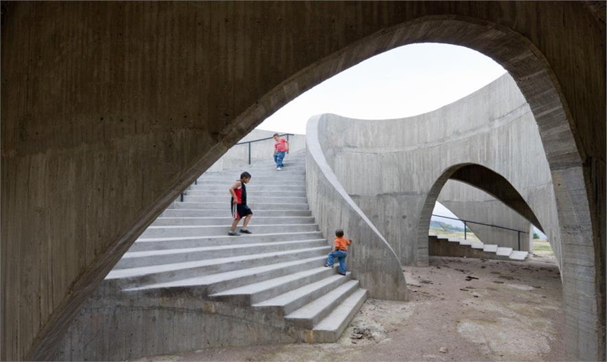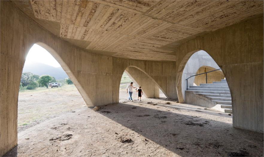 建筑的重點(diǎn)是它的表現(xiàn)形式,在給出的7個(gè)通道中,與壯美的景觀和宗教儀式有著密切的關(guān)系,這種深的凹槽形狀形成了這個(gè)虛幻的地標(biāo)建筑。每個(gè)地標(biāo)式的建筑都是由不同的設(shè)計(jì)師設(shè)計(jì),一群個(gè)人面對(duì)一塊場(chǎng)地進(jìn)行討論,把設(shè)計(jì)意圖添加進(jìn)來(lái),打造成了這個(gè)單層建筑。