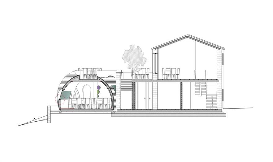 該項(xiàng)目是對(duì)一棟被遺棄多年的建筑進(jìn)行整改與擴(kuò)建。我們對(duì)墻、屋頂和門框進(jìn)行了修復(fù),保存了舊有建筑的基本特征。內(nèi)部則按照建筑被賦予的新角色(餐館)重新設(shè)計(jì),并使其符合現(xiàn)行的法規(guī)。