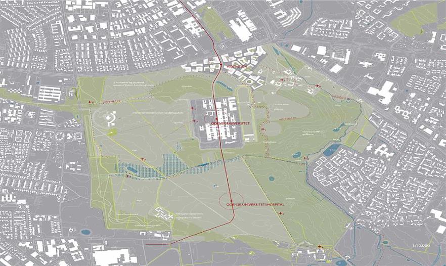 南丹麥大學(xué)的這個新研究和知識園以及門戶區(qū)的中心理念是大勢所趨的可持續(xù)發(fā)展方法,實施緊密的集群化發(fā)展,留下更多不受影響的綠色自然。