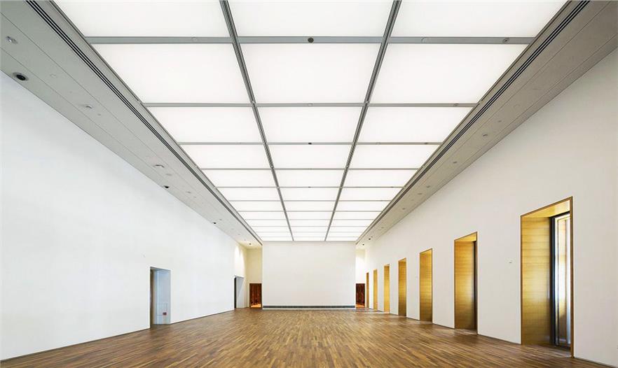 新加坡政府希望將兩個(gè)重要的歷史建筑合并成為新加坡國(guó)家美術(shù)館,建筑設(shè)計(jì)事務(wù)所Studio Milou得到了這個(gè)重要項(xiàng)目的設(shè)計(jì)權(quán),在城市中心地帶實(shí)現(xiàn)了一個(gè)壯觀,卻又與歷史文脈和諧的新加坡國(guó)家美術(shù)館。建筑的標(biāo)志性元素是一個(gè)頗為壯觀的,由掐絲金屬和玻璃組成的屋頂。該屋頂被樹狀鋼結(jié)構(gòu)支撐,陽(yáng)光從淡金色和銀色的屋頂中漏下,如實(shí)的反映著外界的天氣和光環(huán)境。閃閃發(fā)光的屋頂如同波光粼粼的海面。這些金屬編織細(xì)藤那閃光的光滑光面與柔和的陰影為登到頂層的游客帶來(lái)了不一樣的視覺體驗(yàn)。用光上,屋頂過(guò)濾掉了新加坡毒辣的陽(yáng)光,使得進(jìn)入屋頂花園和建筑中各個(gè)中庭的光線柔和。在其他室內(nèi)地區(qū),建筑師積極利用來(lái)自窗外的自然光。原有窗戶被擴(kuò)大,同時(shí)為游客提供了城市與海景的壯觀景色。內(nèi)飾的配色方案以及炫彩克制簡(jiǎn)約,與廣大展區(qū)的木地板協(xié)調(diào),統(tǒng)一為中性整體空間。