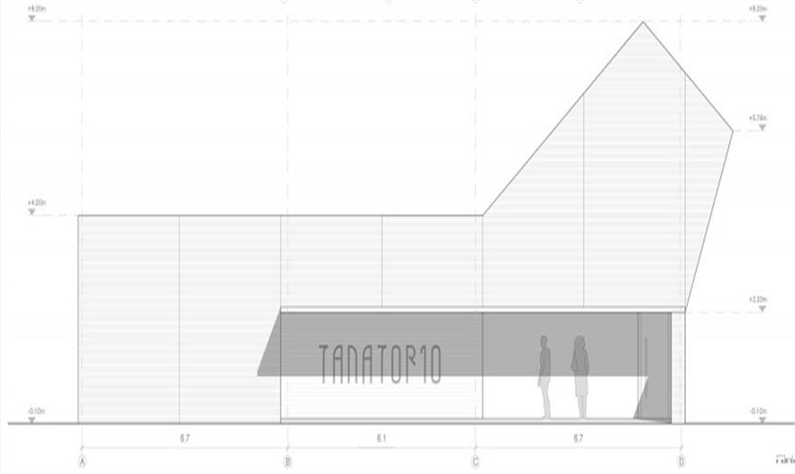 Tanatorium通過獨特的漏斗造型喚起了使用者對上帝深刻的感知體驗。帶有栓孔的混凝土圍合而成建筑體量仿佛從土地中生長出來,在人們與死去的人告別時,慰藉他們的心靈。建筑師設計了一個特殊的造型,使得建筑直接與太陽發(fā)生對話,表示對最原始的太陽神的崇拜。