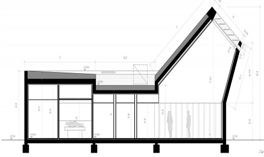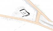 基地位于小城周邊的松樹林中,建筑位于基地的最南側,通過紀念性的建筑造型重新定義了城市的邊界。建筑的公共入口位于西側,通過入口進入到南向的大廳空間,由此可以前往殯葬室和休息室。