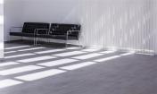 陽光穿過金屬百葉照射進來,通過陰影的循環(huán)移動,營造了時間流逝的視覺印象。百葉在設計時,注意在夏天為室內(nèi)帶來陰影,冬天時保證陽光得以穿過,為室內(nèi)帶來熱量。