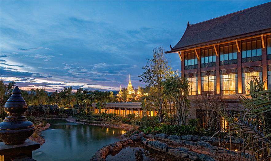 自唐代開始,西雙版納便形成了中國南傳上座部佛教的中心之地。佛寺佛塔遍布村寨,成為傣族人民生活的中心場所,更成為了他們心目中的圣殿。萬達文華度假酒店是世界上首個以南傳佛教佛塔為中心的頂級度假酒店,佛塔不僅是酒店群落的中心,也是地域獨特文化內(nèi)涵的中心??腿吮灰肴荷矫芰种械奈娜A酒店開始,就在體驗設(shè)計鋪陳的情節(jié)—西雙版納傣族特色的生活方式和宗教文化氛圍,塑造出尊尚而隱密的氣息與場景,使參與和融入現(xiàn)場的客人獲得前所未有的異域情境體驗。