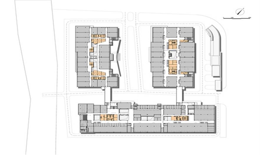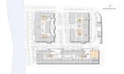 考慮到電子商務(wù)行業(yè)的透明性和靈活度的特點(diǎn),設(shè)計(jì)師先通過在大樓中心處拆開樓板的方式來引入自然天光并設(shè)置各自公共空間如會議室、展覽走廊和餐廳。這種設(shè)計(jì)想法產(chǎn)生了一系列“公共客廳”來促進(jìn)內(nèi)部交流互動和信息共享,另一方面,它也創(chuàng)造了愉悅而光線充足的工作區(qū)域。此外,高樓為滿足客戶的未來需求而設(shè)計(jì);所有的功能區(qū)域均和信息中心連結(jié)起來,以通過使用無線網(wǎng)絡(luò)操作移動監(jiān)控和不同用戶的訪問系統(tǒng)的物業(yè)管理部門來提高工作效率。