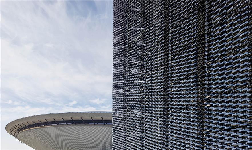 設(shè)計(jì)背后的總體哲學(xué)是創(chuàng)造一處有價(jià)值的設(shè)施,不僅提供功利性自然的功能性解決方案,同時(shí)也為城市社會空間內(nèi)的已有構(gòu)筑物創(chuàng)造條件。中心建筑,以其直觀、鮮明而清晰的形式,融入城市的公共空間,沿城市主軸聯(lián)系到“榮譽(yù)”廣場(也是卡托維茲的主要交通節(jié)點(diǎn))和Bogucice歷史區(qū)域。聯(lián)系實(shí)行了雙重方式:公共通道的形式穿過主廳和中央的門廳(一種特別在公開活動中使用的聯(lián)系,例如交易會或展覽會),以及外部環(huán)線的形式穿過建筑屋頂(綠色區(qū)域),會在全年中使用,例如戶外展覽或事件。