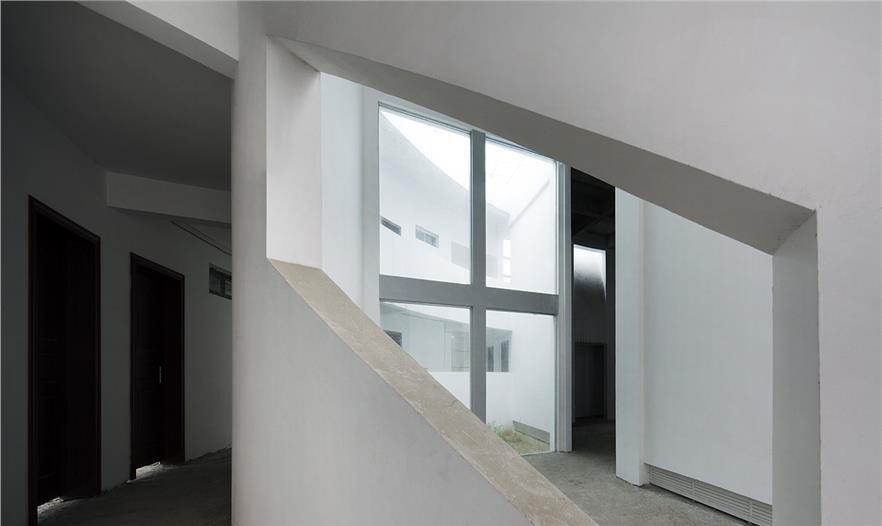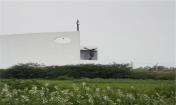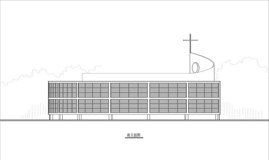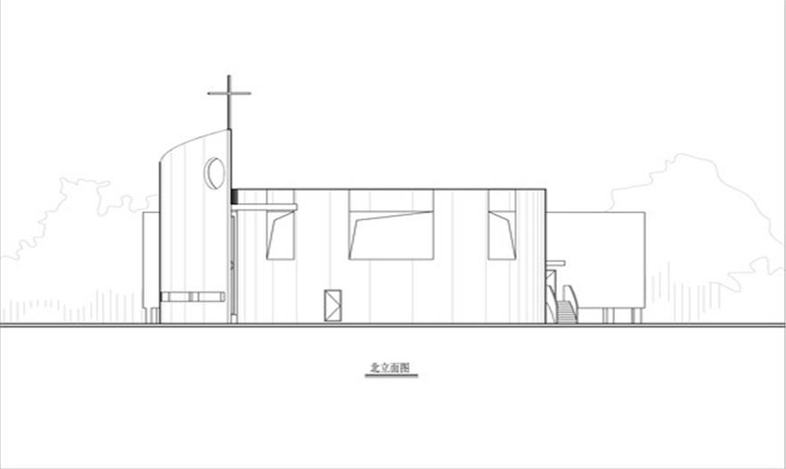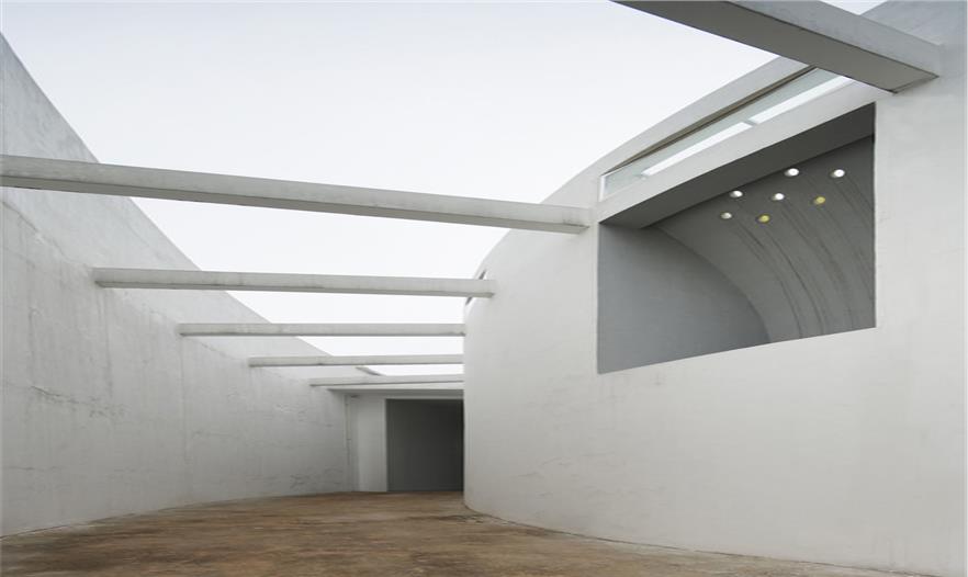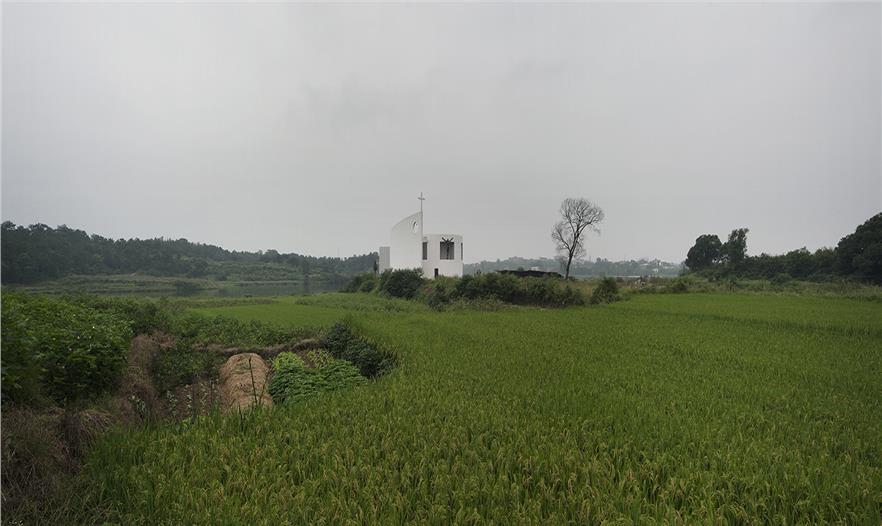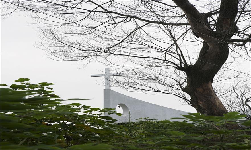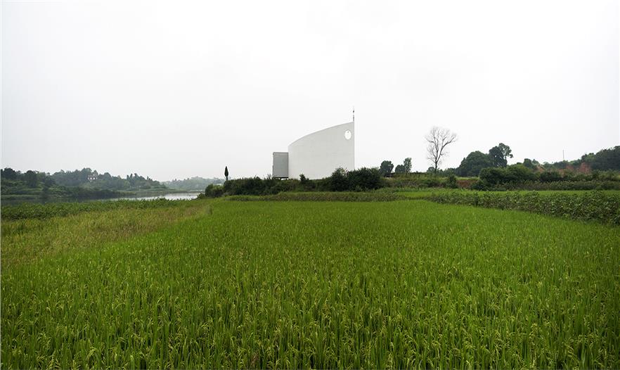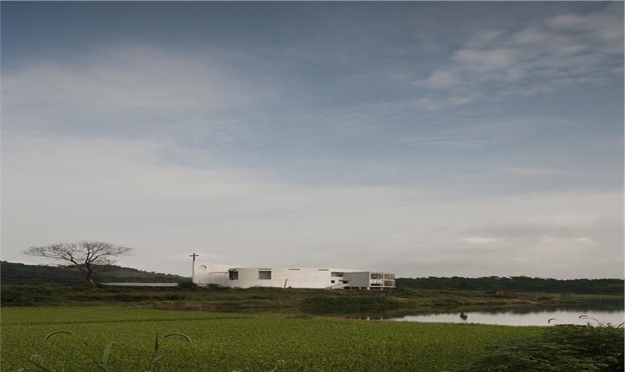 在教堂的相應(yīng)弧面墻上的外表皮上挖有方形小坑,可種入植物生長。所有建筑涂上白漆,這并不是一個故意的意圖。一方面說,涂白漆和成本控制有關(guān);另一方面,還有圍護(hù)結(jié)構(gòu)的技術(shù)限制因素。涂白漆是經(jīng)溝通后的最合適選擇。最后,白漆建筑在周邊茂盛環(huán)境里散發(fā)出一種寧靜和個性特點。