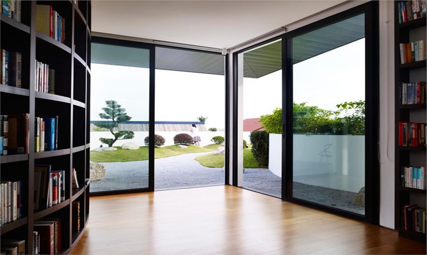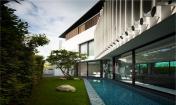 這個房屋建筑是由Aamer Architects事務(wù)所建造,位于新加坡一塊長型、狹窄的濱水地產(chǎn)上。