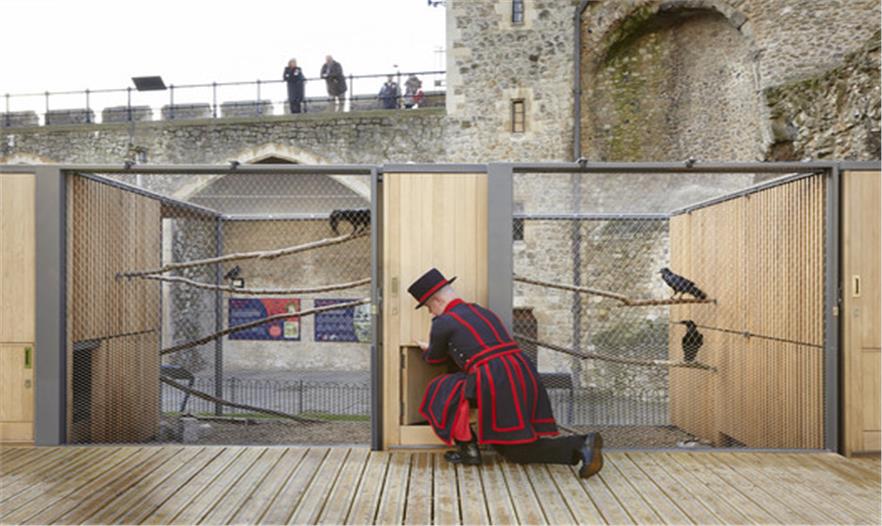 Llowarch Llowarch Architects 建筑師事務(wù)所已經(jīng)完成了英國倫敦塔里面的傳說中的烏鴉新住宅的護(hù)圍建設(shè)。它就位于邊上的草坡上,在塔里面的最內(nèi)側(cè)。新的建筑占地500平方英尺,為木結(jié)構(gòu),對這些鳥來說是一個優(yōu)雅的和舒適的新家,并讓游人在這個倫敦塔最熱門的游覽項(xiàng)目中能夠近距離的觀賞烏鴉。