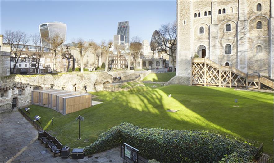 另外,一個新建的木制甲板空間專門用來教育培訓(xùn)和研討會等活動。屋頂也是從遠(yuǎn)處看過來的一個重要高點(diǎn)景觀。并且它也與烏鴉用品商店上面的草坪在一條直線上。HRP所委托的這個項(xiàng)目是作為倫敦塔游客體驗(yàn)持續(xù)改進(jìn)計劃的一部分,而這里面的烏鴉是很多游客前來參觀的主要景點(diǎn)之一。