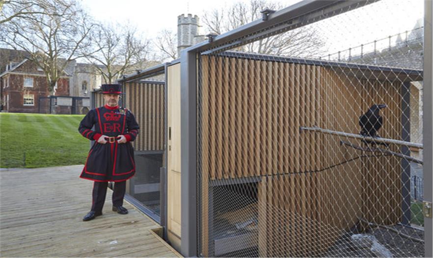 由于烏鴉的舊舍已經(jīng)超過了其使用壽命。英國皇家宮殿獨(dú)立慈善機(jī)構(gòu)委托Llowarch Llowarch建筑師事務(wù)所為烏鴉住宅設(shè)計建造一個新的護(hù)圍,以解決公眾參觀問題,并同時改善鳥類居住的福利和舒適度。在這個皇家宮殿里為鳥類提供一個安全舒適的棲息地也有一個重要的傳說,如果烏鴉離開這里大英王國將會衰落。建筑師Nicola Llowarch說道:“烏鴉是一種非常聰明的鳥。它們不喜歡待在籠舍里,在倫敦塔里的這些鳥在白天應(yīng)該可以自由飛翔。新建成的護(hù)圍將開口放在了后面,烏鴉可以在這里自由進(jìn)出。在晚上為了保護(hù)它們而關(guān)閉。