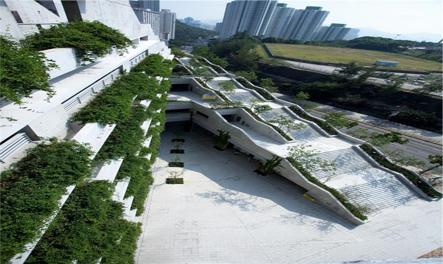 新鉆石山殯儀館的設(shè)計(jì)旨在保留“拜山”的傳統(tǒng);減少因祭祖儀式所引起的空氣污染及對(duì)周邊住民的干擾;并把原先看似令人恐懼的骨灰儲(chǔ)存結(jié)構(gòu)的殯儀館形象轉(zhuǎn)換為帶有公共開(kāi)放場(chǎng)地的建筑。
