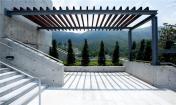 在屋頂?shù)倪h(yuǎn)端,即殯儀館的最高點(diǎn),是一個(gè)小花園---一個(gè)理想的冥想之地。正朝南的黑色花崗巖墻的盡端是對(duì)步入宇宙的隱喻指南針形象。兩排佛祖木雕讓人不禁放松心態(tài)進(jìn)入冥想。
