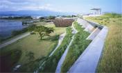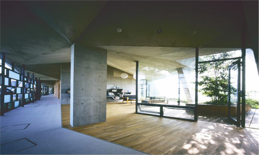 折疊狀板由斜柱支撐,成功地隱藏了結(jié)構(gòu)梁。各層的屋檐被向外延伸的灌木覆蓋形成綠色平臺,從而為建筑打造了一個綠色階梯,有效地緩解了太陽輻射,這些面板只是在室內(nèi)露出來的地方才能感受到,整個建筑被這些面板做成的平臺包圍著。和想象的一樣,來自琵琶湖面上的風會穿過室內(nèi)空間,讓人們在空間里有了舒適的體驗。這些平臺由南向北均勻分布,隨著墻體的角度而不斷變化。本項目除了采用鋼筋混凝土結(jié)構(gòu),還伴隨著工業(yè)化未成型的材料以及本地制造的天然材料一起被使用。這是對日本的建造方法、技術(shù)、以及傳統(tǒng)的致敬,同時也將它們很好地運用到了當代建筑中。
