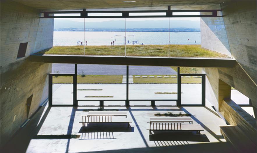 進到這個樂器中間,你就是一個聆聽音樂的人。在這個平靜的空間里,始終回響著琵琶湖的海浪聲音,當風變得強硬起來成為疾風時,你聽到音調(diào)會隨著風的速度和方向而變化。當風通過和地球表面發(fā)生摩擦時會產(chǎn)生能量的變化,同樣在琵琶湖和周圍群山之間的地球引力和不均勻的太陽能也會顯現(xiàn)出聲音的不同,因此,你在建筑中能夠感受到大自然的各種景象,你聽到的都是各種各樣的大自然的力量。