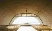 教堂充分利用了琵琶湖的風。自然的力量使湖面的風進入這片神圣的領(lǐng)域,為了充分利用這種風,建筑被設(shè)計成為一個類似于風弦琴的弦樂器。就像一個在希臘神話中的弦樂器,而風是由風神埃俄羅斯吹過來的神風,而我們設(shè)計的這個風弦琴就是為了獲得風和琴在一起的和諧效果,這就是對這個樂器設(shè)計的最好解釋,當風來時,空間奏響了美妙的樂曲。
