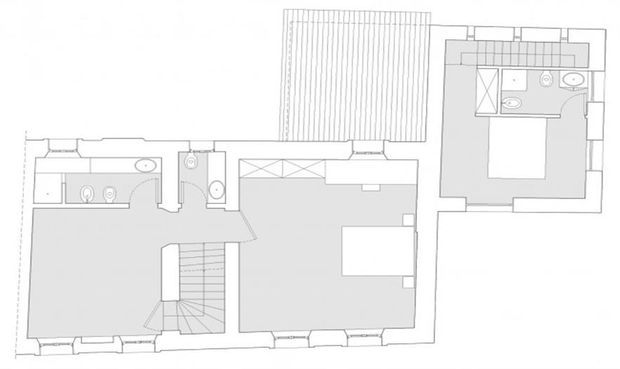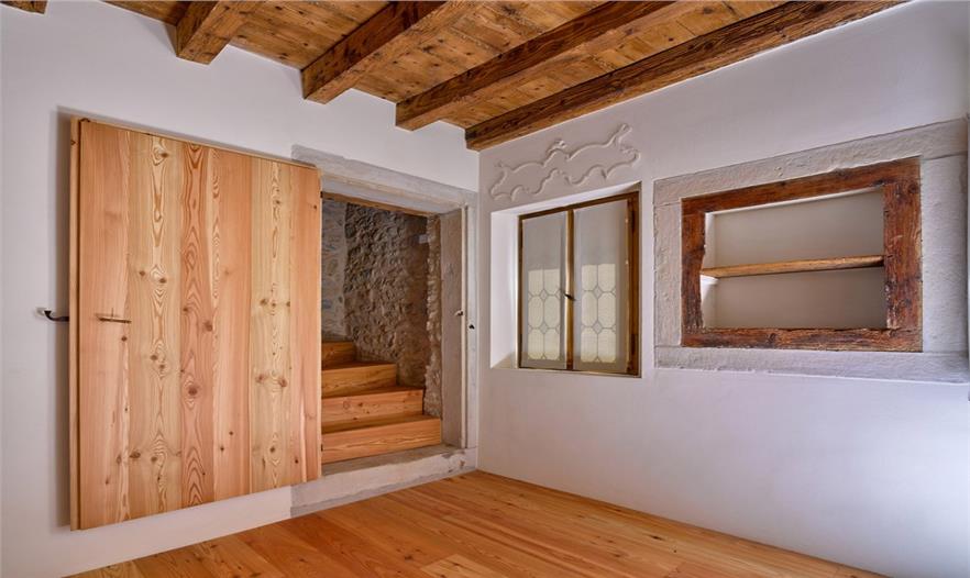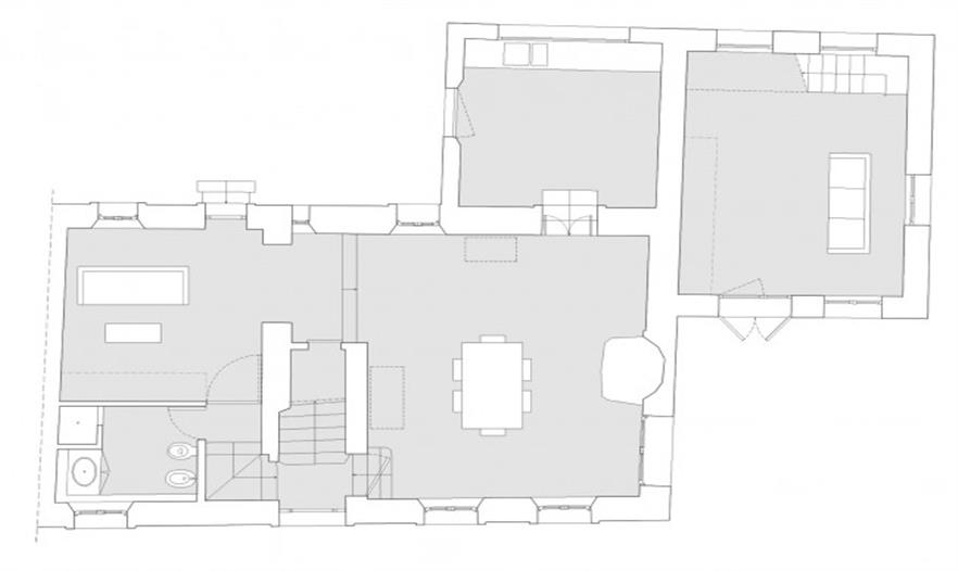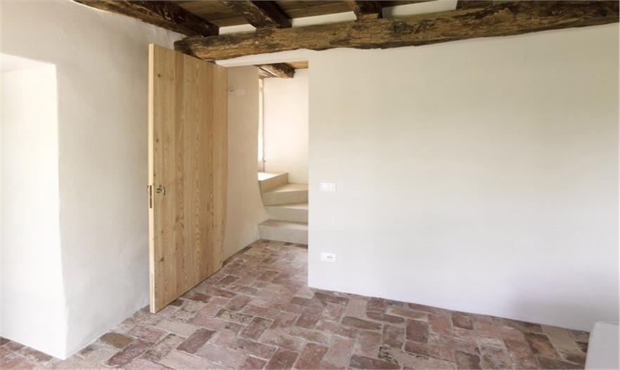 建筑師在修復(fù)這棟房屋時(shí)也運(yùn)用了諸多全新的建筑元素。為了使其徹底轉(zhuǎn)變成舒適的居住場所,建筑師對地面層和一層空間的功能進(jìn)行再分配:雜貨間變身廚房;在地面層和一層分別加設(shè)一個(gè)衛(wèi)生間。修復(fù)過程中產(chǎn)生的廢棄陶片和石材均被清理,而后重新使用到新的建筑中。