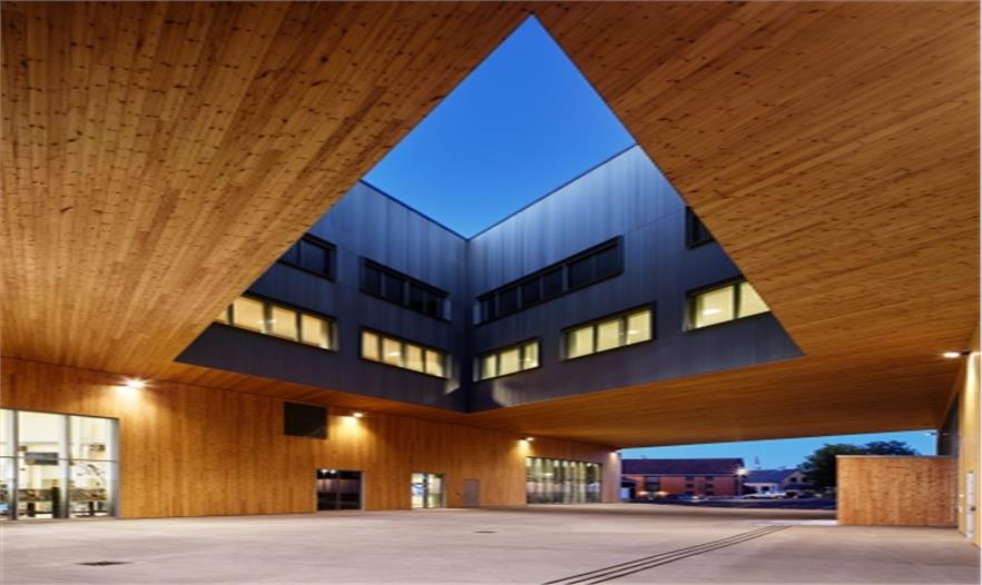 這個(gè)新技校位于滕斯貝格城鎮(zhèn)中心以及其在波羅的海主要港口之間的海港區(qū)。在這個(gè)區(qū)域能看到過去工業(yè)建筑的痕跡,希望這個(gè)學(xué)校成為該區(qū)域復(fù)興的催化劑,同時(shí)興起一些貿(mào)易和當(dāng)?shù)芈劽募夹g(shù),如木工、焊接和機(jī)械工程。