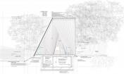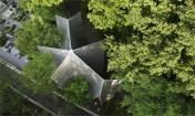 基地位于林區(qū)和墓區(qū)之間,建筑師將教堂布置在林木之間,為祈禱者提供了一個向自然禱告的空間。建筑師沿著這塊三角形基地的周邊,栽種樹木,讓身在教堂中的人可以穿過枝葉俯瞰林區(qū)。