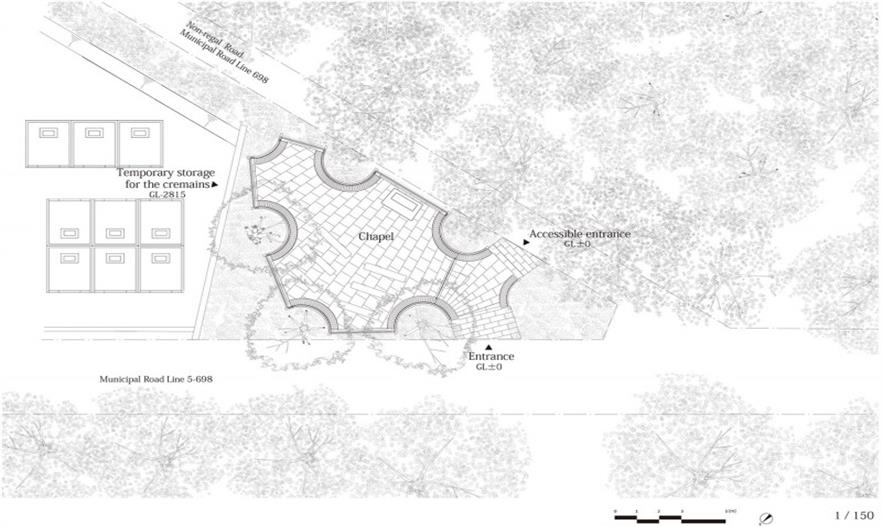 地面稍稍向祭壇傾斜,前來此處的人們因此不自覺地面向祭壇。當人們祈禱時,雙手的指尖輕輕并攏,在下方形成一個小而暖的空間。建筑的造型就是這個空間的放大,跟著虔誠的人們一起禱告。