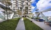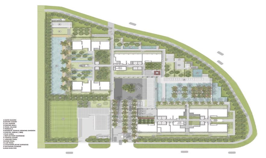 在地面上具有一個(gè)下沉花園,場(chǎng)地的70%被設(shè)計(jì)成了茂盛的公園,提供了額外的室外活動(dòng)區(qū)域、游泳池、一座網(wǎng)球場(chǎng)和散步的路徑。
