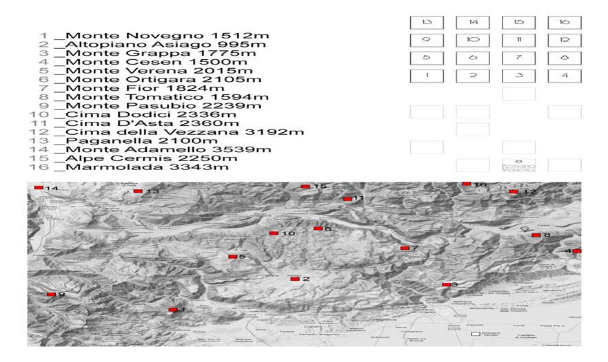 地圖是一個回憶領土整體的符號的概念。項目是這樣的:一個地圖,對我們的領土和山與人之間在特定情況下的結合的分析。一個平臺:我們團結的力量是我們的基礎。一個生命的地圖。這個概念屬于生命定義的交織和聯(lián)系。它的脆弱性、穩(wěn)固性和不可預測性的一切可能。空間:離開,離開家而犧牲。一個?放棄的地圖。?每一個空間都是由于我們無法控制的情況下的再見。留下的空洞代表失去了生命??斩醋≡诨貞浝铩F鹪矗核麄兊臓奚淖円饬x和自然的感覺。?犧牲的地圖。?空洞——alpini導致我們的領土——成為山的一部分,不僅僅是一個物理實體了,但事實證明是自然和精神之間的聯(lián)盟。這些坐騎的偉大并不是由于只是純粹的自然因素,而是融合自然和人類。左側空間增益的新身份混合,給它一個新的意義。