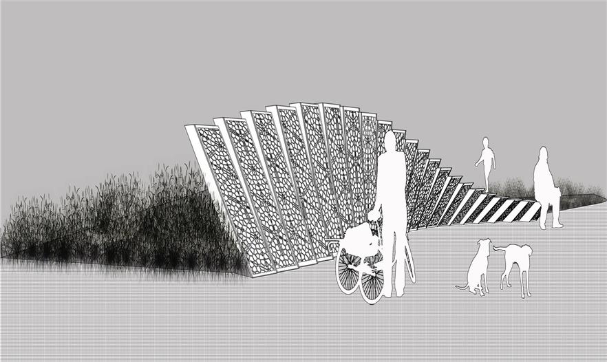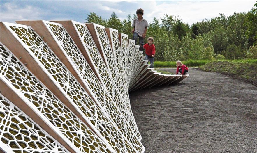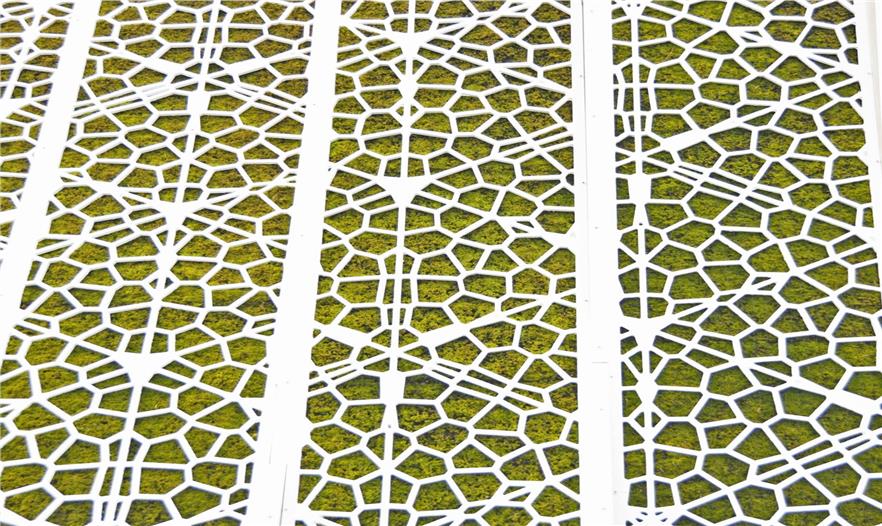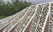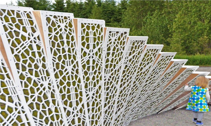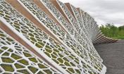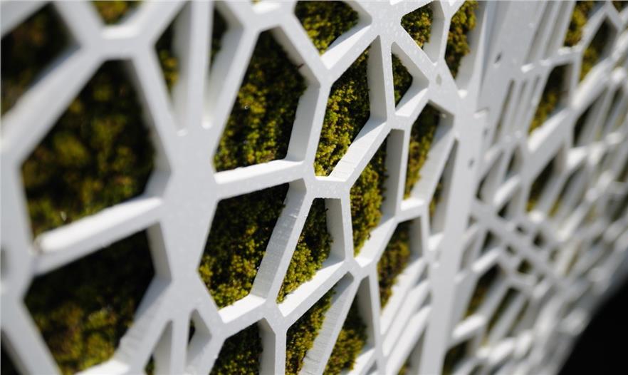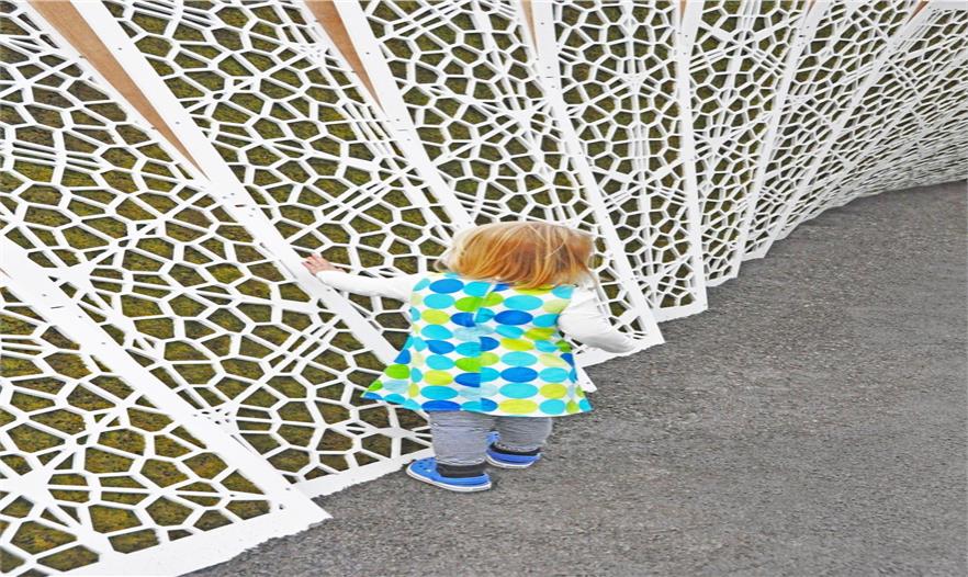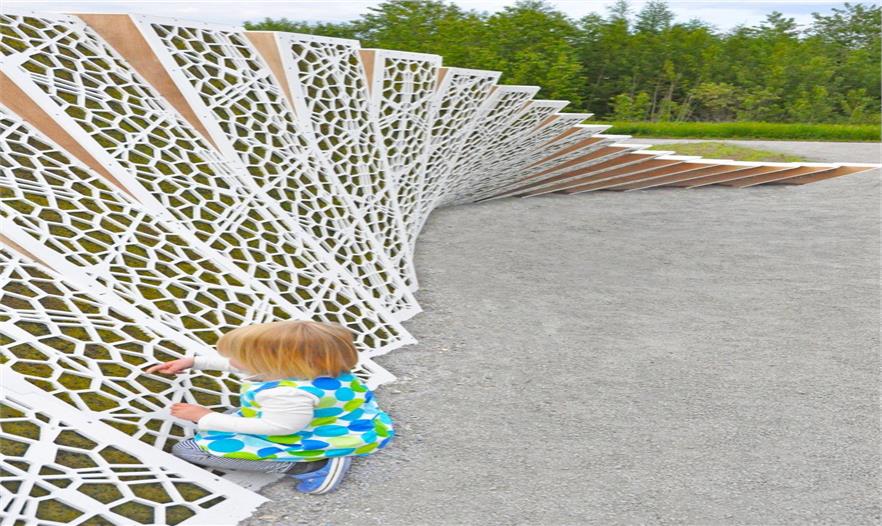 園藝墻一直以來都是展示園區(qū)歷史的元素。在現(xiàn)代設(shè)計(jì)理念和建模技術(shù)下,入口處的墻壁被設(shè)計(jì)成為一個(gè)絲綢狀的表面。這種波紋狀的形式為園林增加了美感,成為游客入口處的標(biāo)志物。內(nèi)部還種植了苔蘚,吸引著游客駐足停留,與花園互動(dòng)。