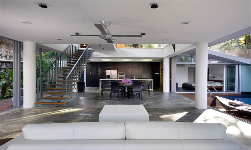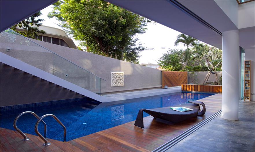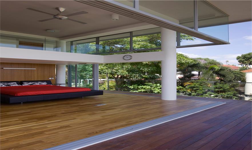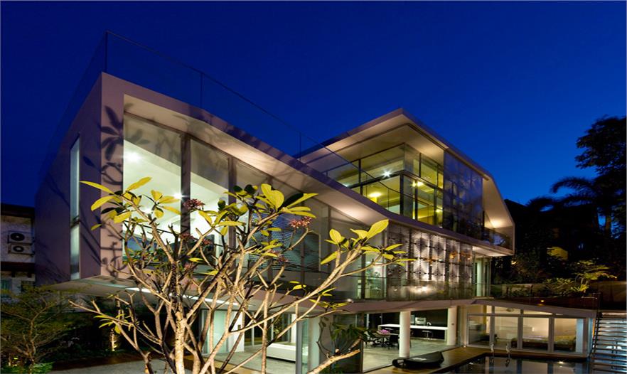 Czarl Architects事務(wù)所和Mink Architects事務(wù)所在新加坡建造了一座開放性住宅,周圍是成熟的大樹和繁密的植物,經(jīng)由前面一條陡峭的道路進入。