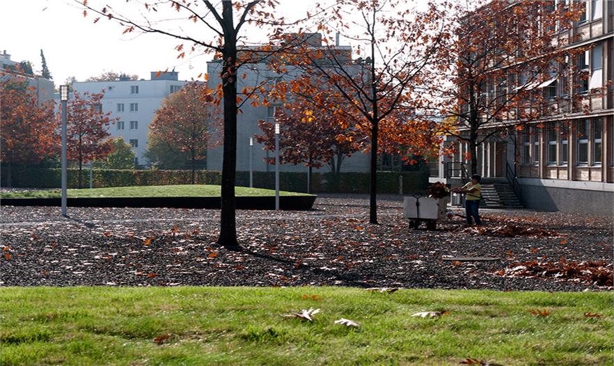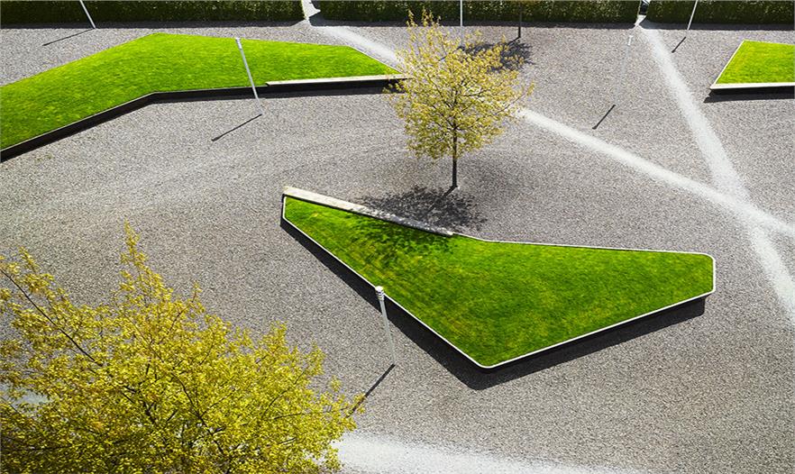 瑞士韋爾新高中位于城市郊野,高中周圍是一些工業(yè)用地,那里的建筑都是來(lái)自上世紀(jì)八十年代。韋爾高中開放空間的設(shè)計(jì)有著獨(dú)特的雙重身份:提供一個(gè)為700名青少年服務(wù)的戶外休閑空間,以及為周邊居民改變陳舊的景觀現(xiàn)狀,以適應(yīng)新建建筑。建立大型的戶外開放空間需要將停車場(chǎng)移至場(chǎng)地邊緣,位于停車場(chǎng)和建筑入口之間的網(wǎng)絡(luò)式路網(wǎng)也將避免。設(shè)計(jì)中的美國(guó)紅橡樹廣場(chǎng)增加了空間的深度,廣場(chǎng)上對(duì)角的種植池中,人們可以在天鵝絨般的草地上休息。柔軟的草坪沙發(fā)與粗糙的橡樹、礫石、碎石鋪地、大型木屋形成對(duì)比,使整個(gè)廣場(chǎng)空間顯得非常有質(zhì)感。