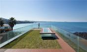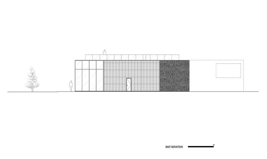 我們按照總體規(guī)劃設(shè)計(jì)的第一棟建筑沿南北中軸線構(gòu)造出一個(gè)不同的水平態(tài)勢(shì)。東面和北面的外墻沒有窗戶,但西面和南面的大部分立面是透明的。此外,連接內(nèi)部和外部的落地窗確保了內(nèi)部的采光并能在此欣賞到濟(jì)州島美麗的大海和夕陽(yáng)西下的美景。
