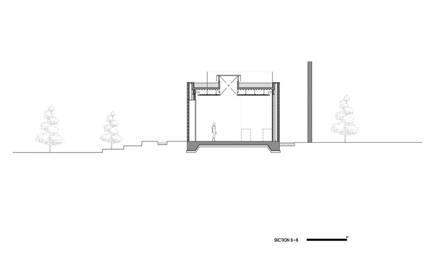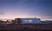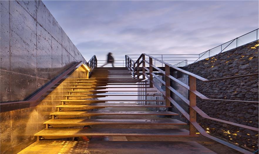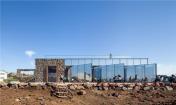 該建筑依據(jù)場(chǎng)地的形狀與地形進(jìn)行布局,因此將建筑沿斜坡設(shè)計(jì)成了一個(gè)盒子狀的小型體量。這個(gè)設(shè)計(jì)精致的體量通過(guò)由混凝土和玻璃打造出了一個(gè)看上去比較中性的建筑,并以此來(lái)吸收現(xiàn)場(chǎng)的景觀特色。與玄武巖墻壁相對(duì)應(yīng)的是用本地材料制作成的建筑材料,就是將混凝土和玻璃混合使用,這也表現(xiàn)出了該建筑想要講述的故事。