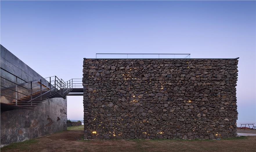 設(shè)計(jì)師將外部環(huán)境映射到了室內(nèi)中,那些濟(jì)州島美麗的景色,像石墻,火山砂和玄武巖等都被這個(gè)項(xiàng)目充分的利用了起來(lái)。通過(guò)將南面的地面挖空,會(huì)形成一種喚醒原始自然的感覺,并作為一種介質(zhì)接受其不斷變化的樣式。避免了對(duì)建筑形式的猜測(cè),該項(xiàng)目通過(guò)空間的各種空隙將自然與建筑和諧的結(jié)合在了一起。