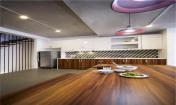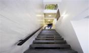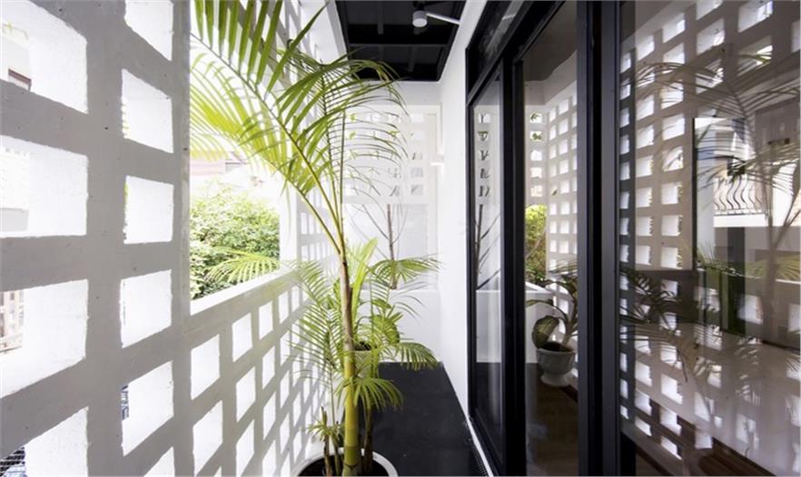 在正面用百葉貫穿,與室外“通氣”,仿佛一個(gè)天然的巨型空調(diào),調(diào)節(jié)著室內(nèi)的氣候。剩下的空間按照最優(yōu)化的使用習(xí)慣一層層摞起來,正面同樣用了一面由大小方塊組成的鏤空墻與室外隔開,期間是房間的陽(yáng)臺(tái),既保證了通氣采光,也起到遮陽(yáng)及視線遮擋功能。晚上當(dāng)Q10住宅內(nèi)部的燈光慢慢滲透出來后,配合偶爾露出頭來的綠色植物,洋溢出一篇健康溫馨的生活滋味。