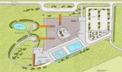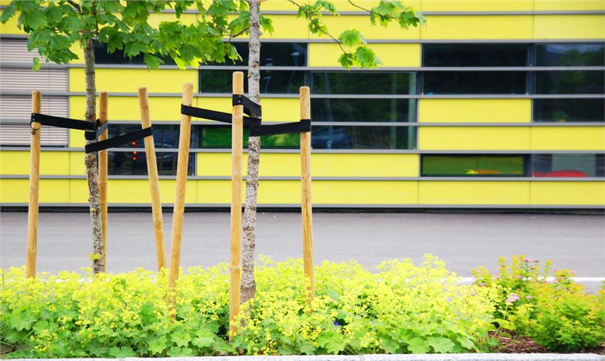 景觀設(shè)計學校坐落于一處平緩的坡地上,并有之前留下的溝壑痕跡。建筑坐北朝南,面對著開放的運動空間和遠處群山。校園圍繞建筑南側(cè)的中心地帶展開,西側(cè)是一個形似峽谷的花園,通過木質(zhì)的支柱與建筑相連,這里可以舉辦各種不同的活動。沿著建筑的南墻有一個活動區(qū)域,這里有籃球場、棒球場、跑道、跳遠用的沙坑和乒乓球臺。這個地方也是學生聚集的場所。有幾處戶外教室、寧靜的內(nèi)部庭院及可承載眾多學生的平臺。建筑南側(cè)的坐凳可用以停駐休憩,也可為室外課堂的交流提供方便。溝壑南邊為一處陽光草坪,并有幽徑通往樹林。林中的每棵樹都標有挪威文和拉丁學名,以及其規(guī)格、樹齡等信息。柏油路上有些幾何圖案以供學習。柏油路主要是由硬景觀覆蓋著。校園被寬闊的混凝土路面包圍。地面植被是褐色橡膠柏油。花崗巖的井欄將人行道和公路分開。峽谷的形狀由草坪精確的傾斜度勾勒出來,灌木叢前面是蘋果屬植物,它們春季生機勃勃,秋季顏色盎然。樹木是以小組為單位種植的。汽車和自行車的停車場上種有有喬木、灌木和多年生草本等多種植物。