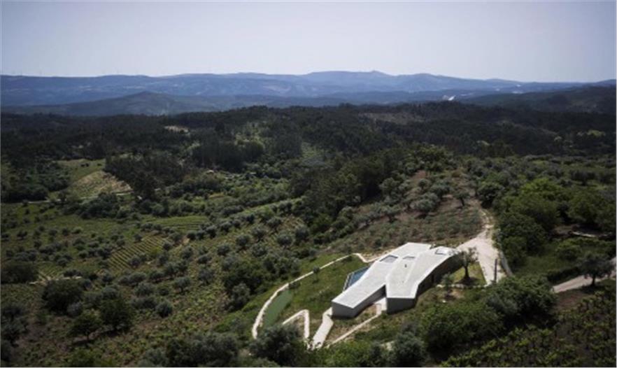 葡萄牙境內(nèi)的最高點(diǎn)埃什特雷拉山脈的南端,有一個(gè)美麗的小村莊 -Gateira。這里群山環(huán)繞,松林遍布,葡萄園和橄欖樹園穿插其中,美不勝收。房子的主人是一對(duì)來(lái)自英國(guó)的夫婦。他們希望這里成為他們的第二個(gè)家,讓他們偶爾能遠(yuǎn)離倫敦的繁忙喧囂,獲得自由和安寧。項(xiàng)目面臨的第一個(gè)問(wèn)題就是如何在如此壯麗的景色中取得自然、農(nóng)業(yè)和傳統(tǒng)建筑三者間的平衡。來(lái)自 Camarim的建筑師意圖最大化的保留場(chǎng)地的原生環(huán)境,建筑則以謙遜的姿態(tài)進(jìn)入。建筑的入口設(shè)置在場(chǎng)地的最高處,墻面用極具當(dāng)?shù)靥厣陌鍘r砌成,進(jìn)入建筑后沿臺(tái)階下行,便可來(lái)到建筑的主體部分-雙層公共活動(dòng)空間。主體空間沿著地形起伏和延伸,巧妙地將私密空間從公共空間中分離出來(lái),每一個(gè)房間都在不同的水平面上并與外界直接相連。建筑在環(huán)境中渾然天成,仿佛是自然的一部分。