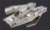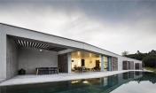 貼合地表的建筑除了帶來(lái)美好而浪漫的意境外,也有著實(shí)際的能源效益。大地用之不竭的熱量讓建筑內(nèi)部在日夜和季節(jié)的更迭中保持了相對(duì)穩(wěn)定的溫度。連接起居室和主臥室的露臺(tái)與外側(cè)泳池之間的溫差推動(dòng)了空氣的流動(dòng),在春夏季節(jié)帶來(lái)陣陣涼爽的清風(fēng)。在秋冬季節(jié),泳池里的大量水體則可輔助穩(wěn)定建筑的溫度。