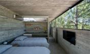 住宅的前立面和后立面使用全高玻璃,這樣可以直接將兩側(cè)的視線導(dǎo)向大海和入口處。四周土黃色的本地松樹(shù)形成了一道保護(hù)房屋私密性的天然墻壁,并與清水混凝土的色調(diào)相互調(diào)和。結(jié)構(gòu)與功能之間旨在相互轉(zhuǎn)化,例如梁變成了帶壁龕的墻,用于容納一些固定裝置或成為儲(chǔ)存空間,所以住宅里的每一種元素都承擔(dān)著兩種用途。