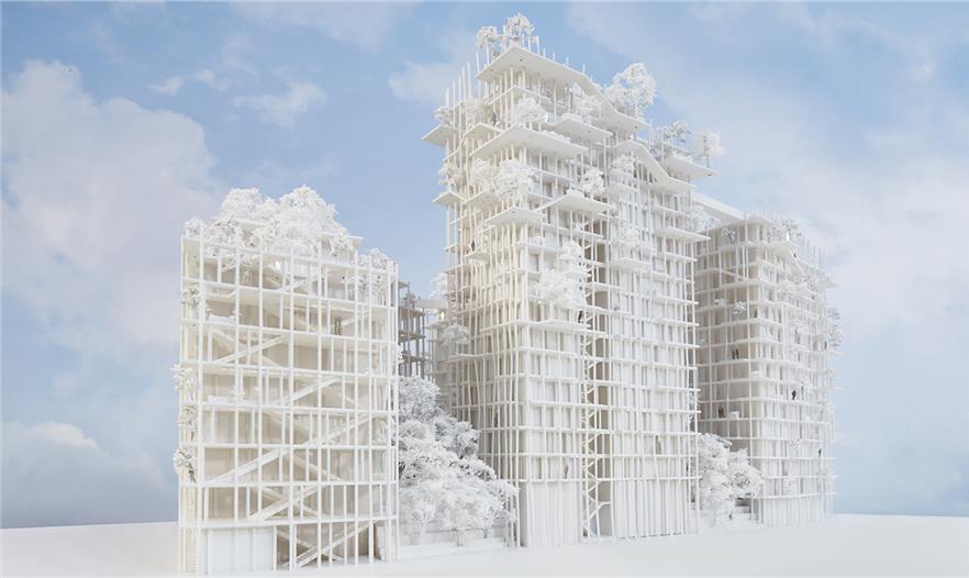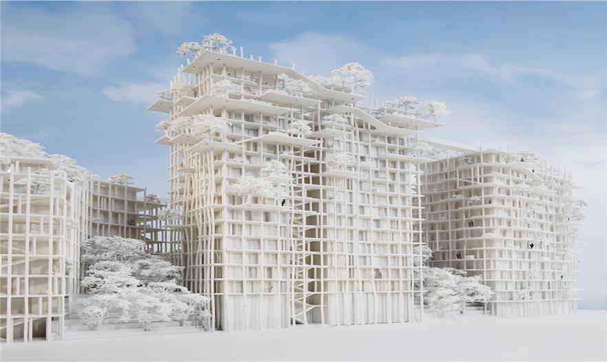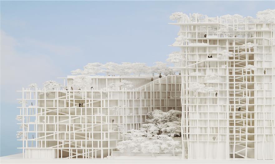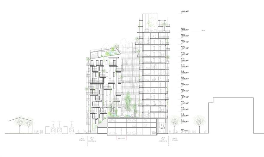 這個項目由四座塔組成,建筑面積約17000平方米,每座塔都布滿了濃密的樹和植被。商業(yè)空間被放置在下層,公寓則在其上。隨著建筑的逐漸增高,私人陽臺越來越大,為綠化和種植提供了更多空間。這種趨勢在四個屋頂花園達(dá)到高潮,每一個都形成了自己獨(dú)特的環(huán)境氛圍。陽臺和建筑的其他部分在水平和垂直上都連接,使用戶能在花園和塔間通行。