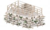 “將不同主題的屋頂花園通過走道相連的提議決定了這個項目,”設(shè)計團(tuán)隊解釋到。“項目特別重視提供優(yōu)質(zhì)的共享空間,無論是在邊緣的陽臺花園還是在中心的綠洲。”居民因此獲得了一系列的花園空間:一片種植農(nóng)作物、果樹與葡萄的空間,堆肥區(qū),儲水槽,冬季花園,一個露臺餐廳和一個屋頂游樂場。