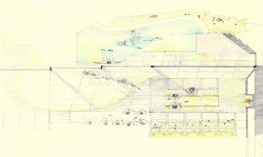 這個“高迪風(fēng)格的當(dāng)代洞穴”有著不同尋常的結(jié)構(gòu)特點,一個精細(xì)而錯綜復(fù)雜的屋頂使用手工制作的鋅瓦,使建筑散發(fā)出奇妙的金屬微光。一位當(dāng)?shù)氐墓こ處煱l(fā)展出一套手工工藝的模板系統(tǒng)來完成屋頂?shù)闹谱鳌?br />