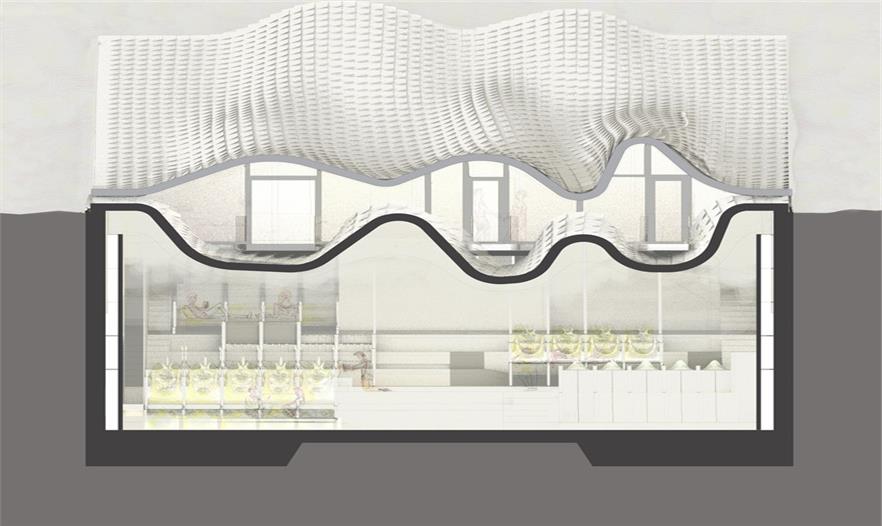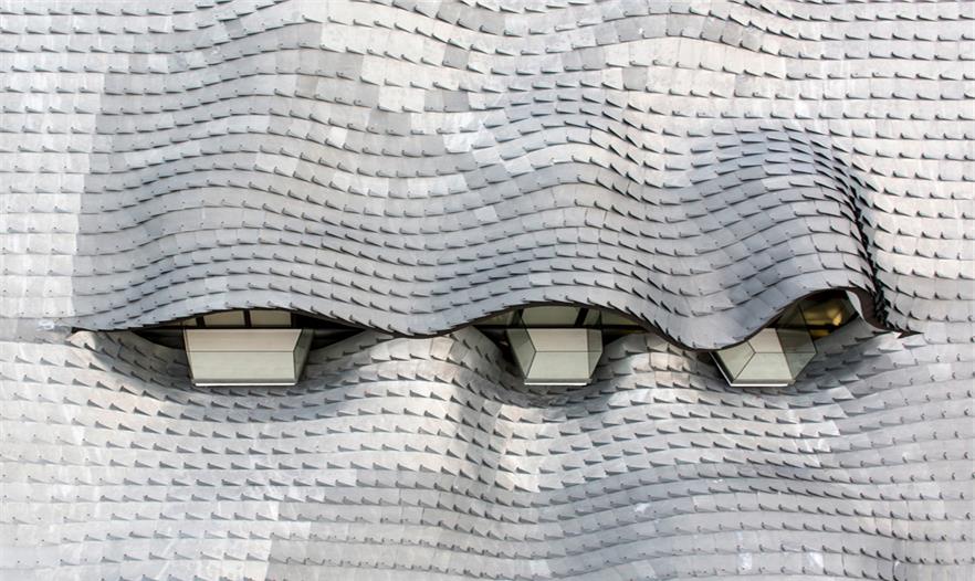 “建筑的形式和金屬屋面創(chuàng)造出一種介于人工和天然之間模糊而獨(dú)特的審美。從下往上看,這個建筑就像是伏在地面的龍的皮膚,而從上往下看,則像是大海的波濤。”——建筑師pablo gil, jaime bartolomé和gilbartolomé解釋道。