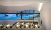 擁有連續(xù)景觀視野的室內(nèi)設(shè)計分為兩層。私人空間被設(shè)置在建筑的二層,而寬闊的階梯狀起居室則被布置在樓下,順應(yīng)著懸崖傾斜的坡度,無縫連接至一個帶有游泳池的懸挑陽臺。將建筑嵌入懸崖的好處是擁有恒定19.5攝氏度的宜人溫度。
