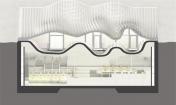 室內(nèi)設(shè)計延續(xù)了建筑外觀的獨(dú)特性,主要的空間被組織成“活動的島嶼”,并可以作為容納70人的禮堂使用。盡管該項目預(yù)算受限,整個建設(shè)工程還是依靠于當(dāng)?shù)氐墓に嚦绦蚝凸そ常?ldquo;這些介于手工和數(shù)字化的技術(shù)可以產(chǎn)生出一種獨(dú)特的混合品質(zhì)。”