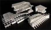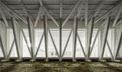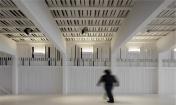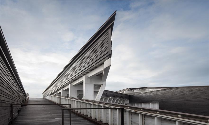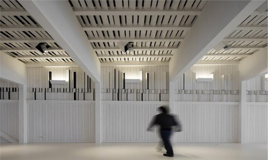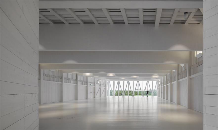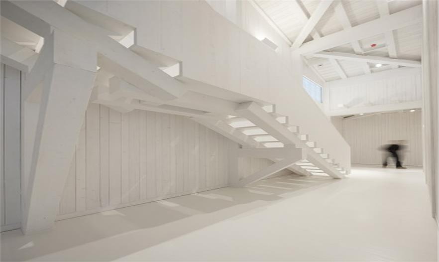 建筑師希望重現(xiàn)Costa Nova地區(qū)傳統(tǒng)的、極具特色的土地和建筑的關(guān)系。鋼筋混凝土制成的建筑基礎(chǔ)一端深埋地底,另一端微微露出地表,懸空托起其上的木質(zhì)建筑體,這種名為palheiros的傳統(tǒng)建造方式保證了整體建筑的穩(wěn)定性,避免建筑隨表層沙地的流動(dòng)而產(chǎn)生偏移。沿建筑一側(cè)的坡道向前,即可來(lái)到一層屋頂平臺(tái),欣賞無(wú)邊無(wú)際的壯闊海景。建筑師將建筑本身低洼的地勢(shì),轉(zhuǎn)化為一個(gè)先抑后揚(yáng)的空間序列。坡道的另一側(cè),木質(zhì)平臺(tái)順應(yīng)地形微微下沉,平衡過(guò)于輕盈的屋頂造型,也形成了建筑入口前端的小廣場(chǎng)。訪客穿過(guò)廣場(chǎng)便進(jìn)入了建筑的安靜的內(nèi)部空間,免受海風(fēng)的吹襲。
