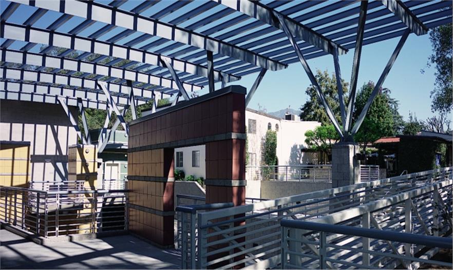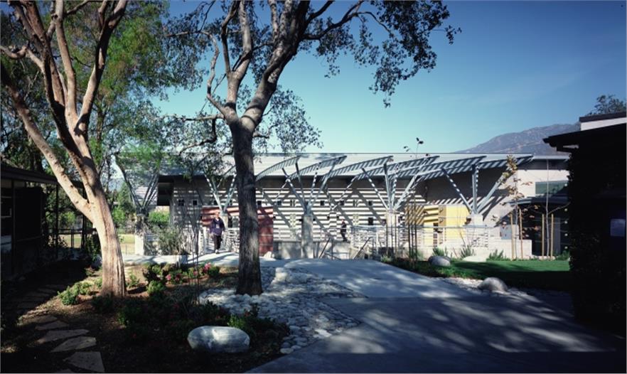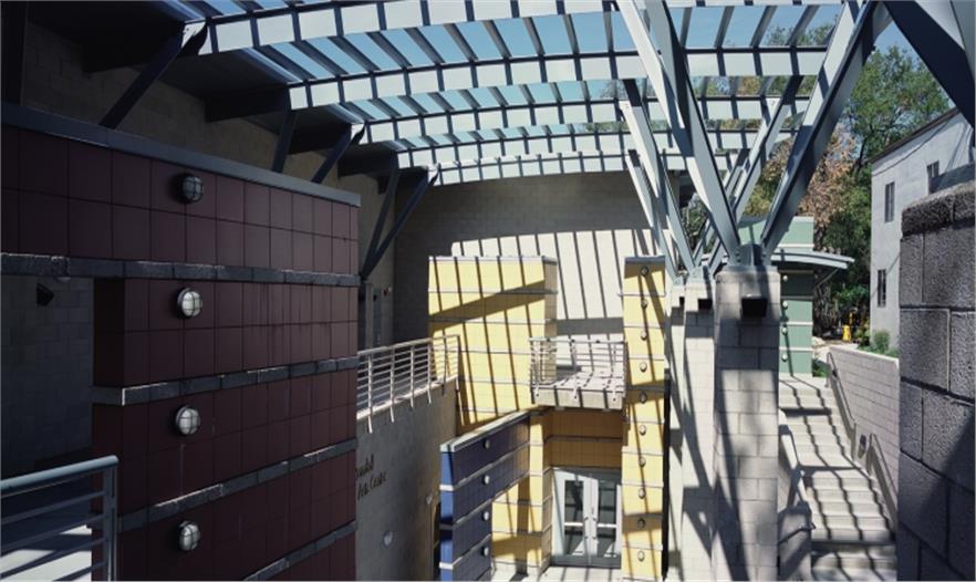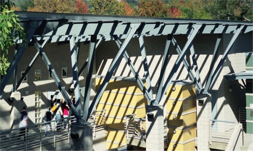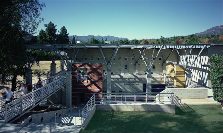 這個新表演藝術(shù)中心是一個2層的建筑,不足929平方米(1萬平方英尺),占據(jù)低層校園之前的網(wǎng)球場。該設(shè)施位于高層和低層校園的隔離坡道上,當作一個連接性的校園地標結(jié)構(gòu)。